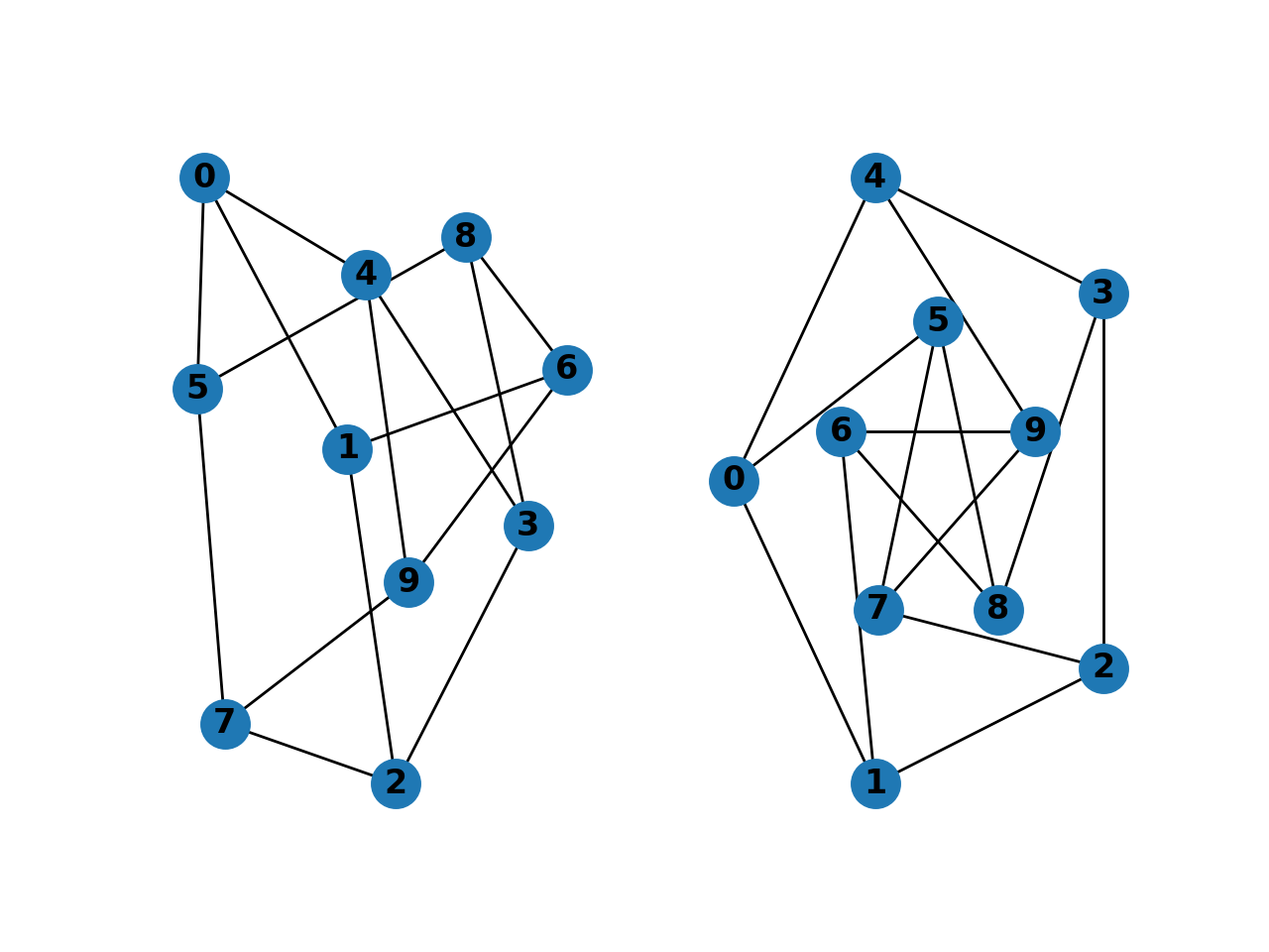 >>> nx.draw_shell(G, nlist=[range(5, 10), range(5)], with_labels=True, font_weight='bold')